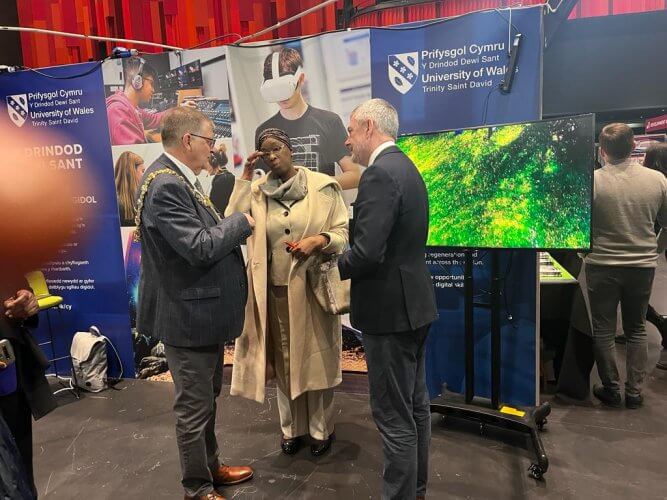 A l’Université de Wales, Mme l’Ambassadeur, Dr Fatima DIA, Mme Colette FAYE , Mme Rokhaya SAMB, en compagnie du Professeur Ian WALSH ont assisté à l’exposition qui était organisé au stade Arena de Wales.